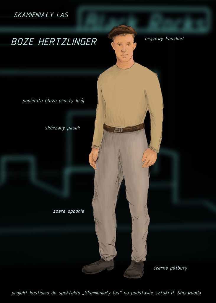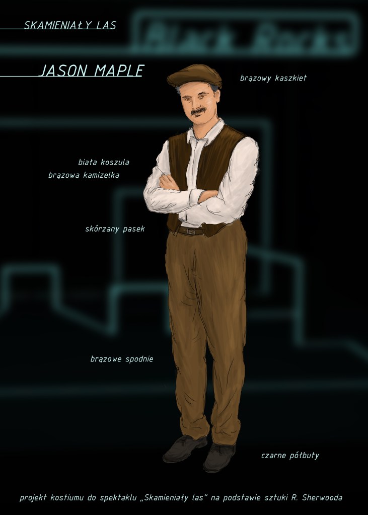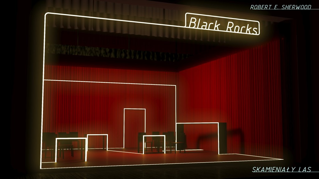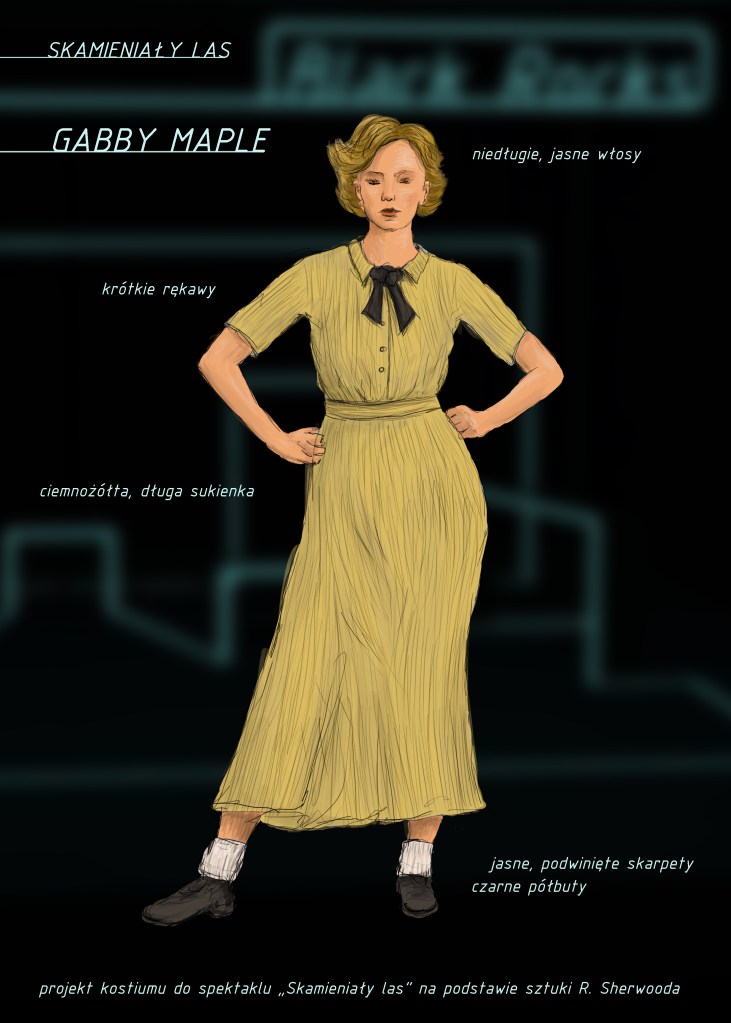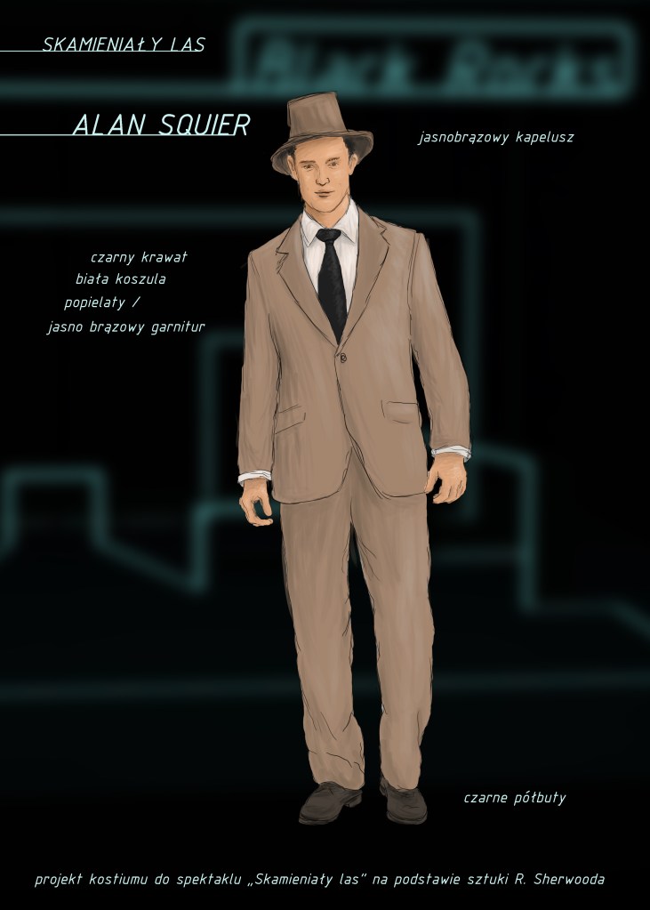 Projekty scenografii i kostiumów do dramatu „Skamieniały las” Roberta Sherwooda