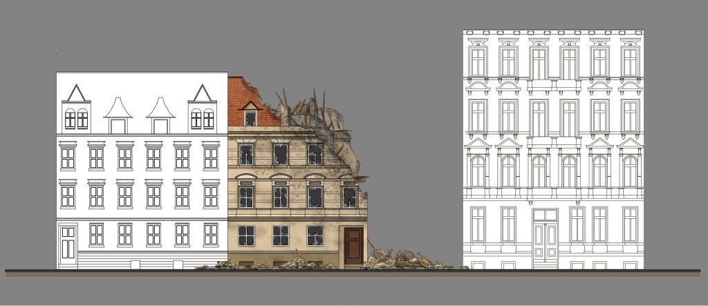 Projekty scenografii do serialu „Dom pod Dwoma Orłami”. Kamienica i wnętrze mieszkania