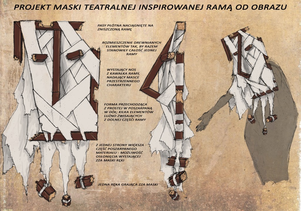 Projekt lalki i maski inspirowanej ramą do obrazu
