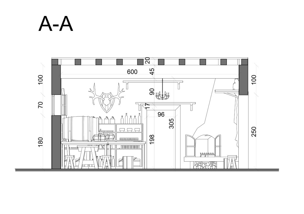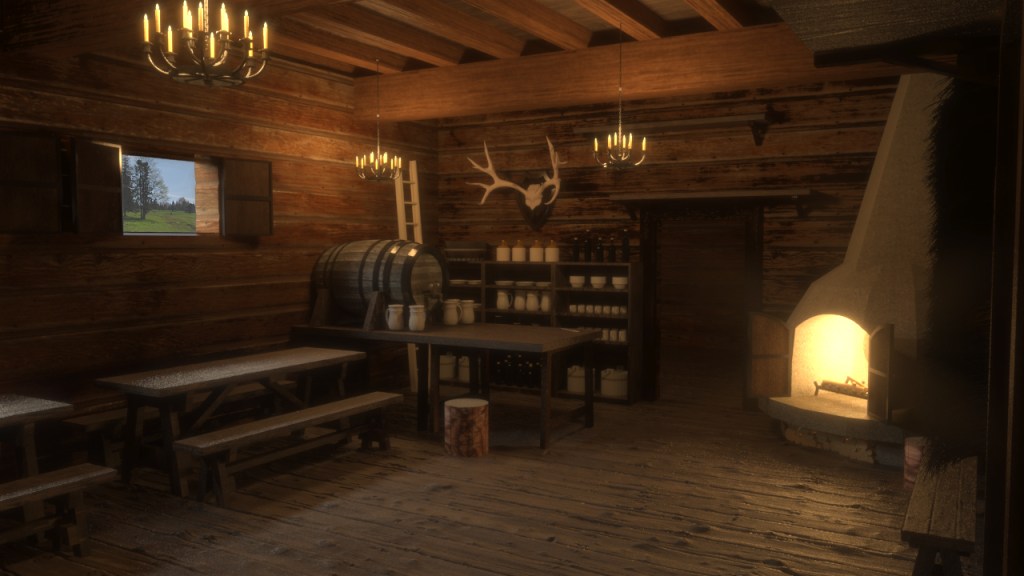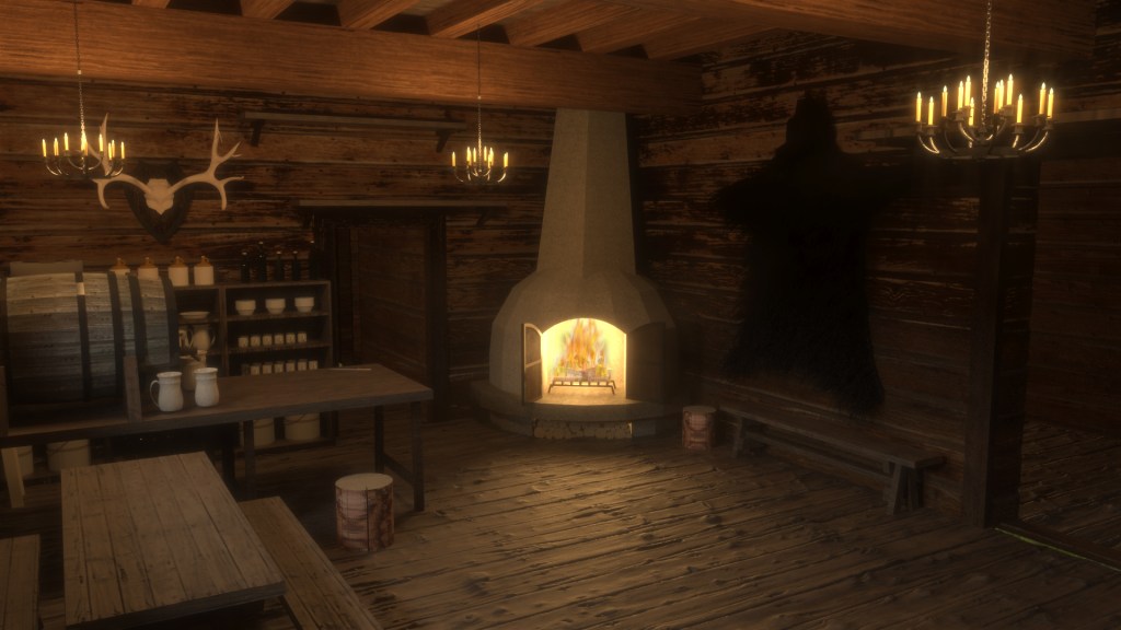 Projekt wnętrza średniowiecznej gospody. Makieta i wizualizacje