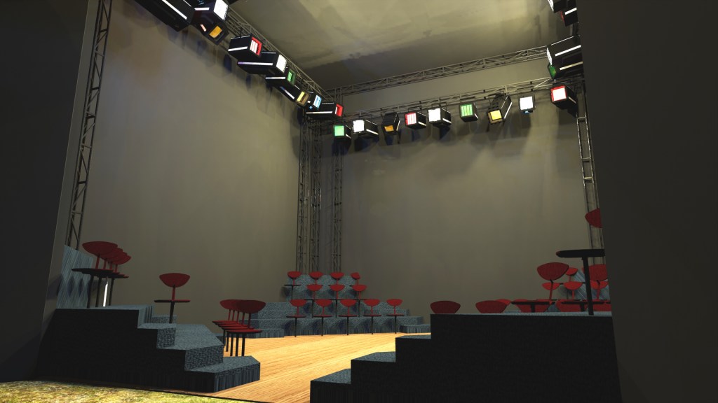 Wizualizacje scenografii realnej i wirtualnej do projektu 3W