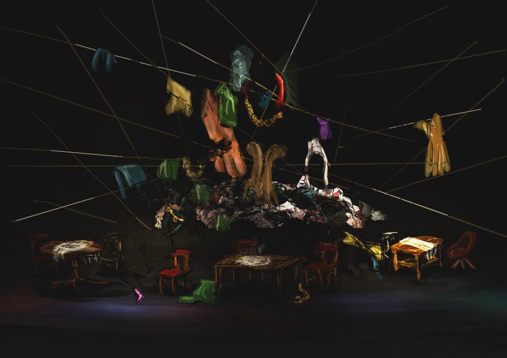 Projekty scenografii i kostiumów do dramatu „Kartoteka” Tadeusza Różewicza